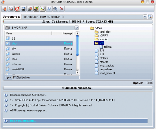 Запись дисков происходит в режиме "On-The-Fly"