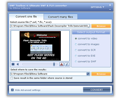 Flash файлов (SWF) в такие графические форматы как Projector EXE, AVI,