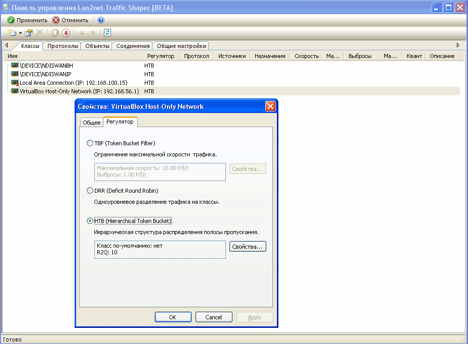 В Lan2net Traffic Shaper реализовано три типа регуляторов:
